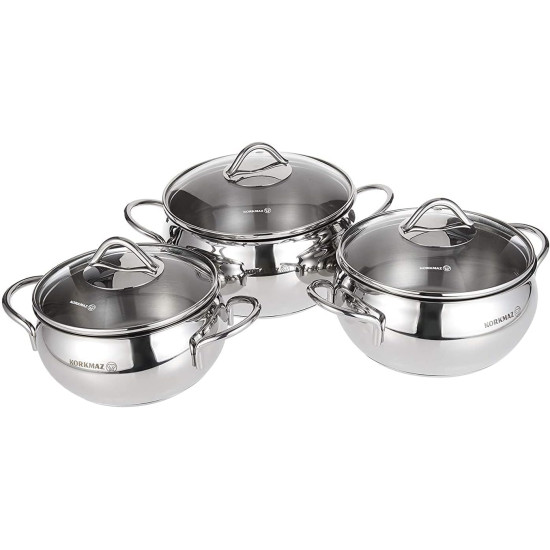 طقم قدور استيل كوركماز تومبيك 6 قطع :