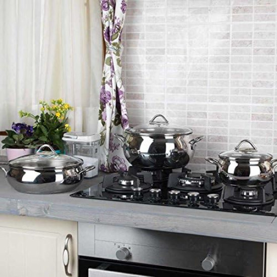 استمتع بطهي وجبة كبيرة لعائلتك مع طقم اوعية الطبخ كوركماز المصنوع من خامة الستانلس ستيل ليوفر لك المتانة والمقاومة العالية للضرر والتلف؛ فهذه الخامة قادرةٌ على تحمل الصدمات أو الكسور التي قد تتعرضُ لها أوعية الطبخ عادةً جراء سقوطها بشكلٍ عرضي. التشطيب العالي المستوى لهذه الأوعية يجعلها ذات مظهرٍ متميز بحق؛ وتصميمها الفريد هذا لا يجعلُ منها متينة فحسب، بل أنيقة وخفيفة الوزن أيضاً لتتمكن من استخدامها بشكلٍ سهل وبسيط. إضافةً إلى هذا كله، فإن هذه الأوعية سهلة التنظيف حقاً.