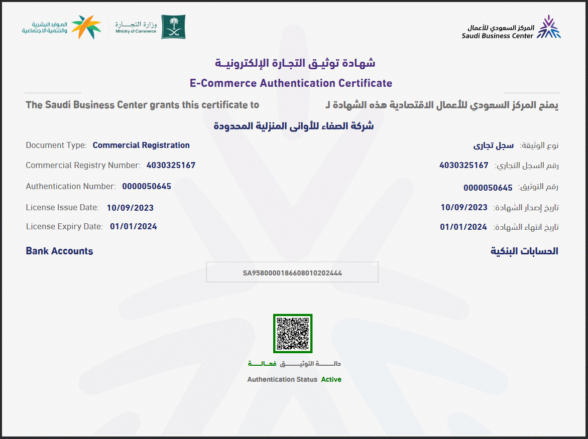 E-Commerce Authentication Certificate