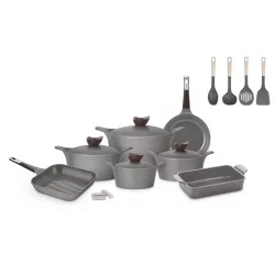 Galaxy Aluminum Cookware Set, 11 PiecesPot: 18 x 9.3 cm / 2.2 LPot: 20 x 10.3 cm / 3.0 LPot: 24 x 12.5 cm / 5.0 LPot: 28 x 14.5 cm / 8.5 LLow Pot: 26 x 7.2 cm / 3.5 LFrying Pan: 26 x 4.5 cm / 2.0 L..